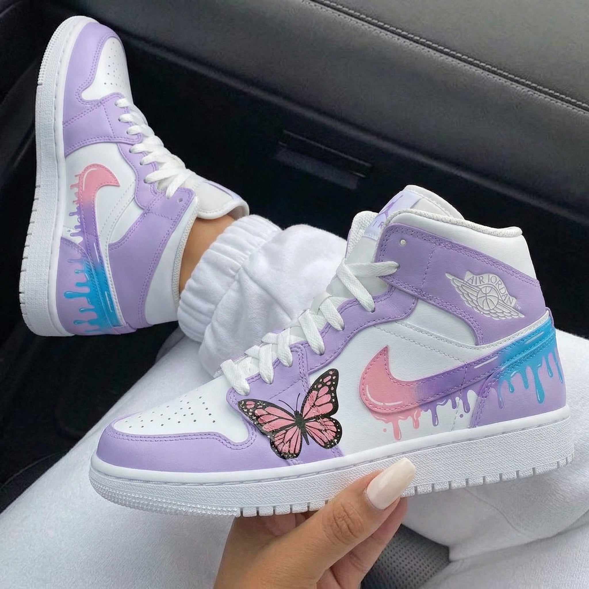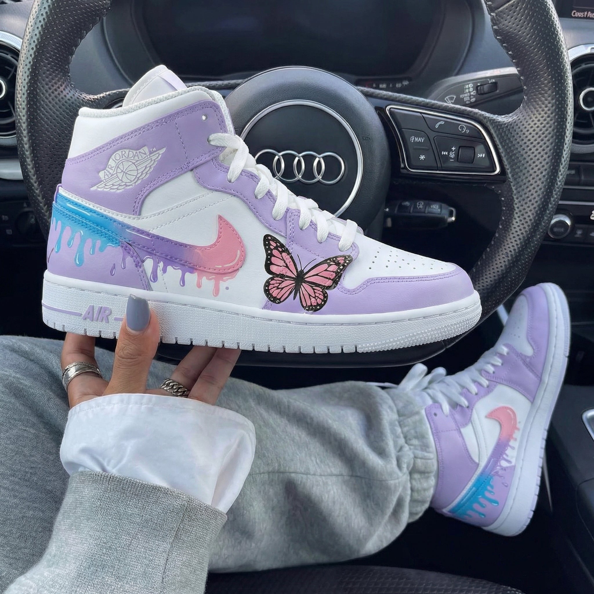 Lavender Pink Butterfly Drip Custom Air Jordan 1