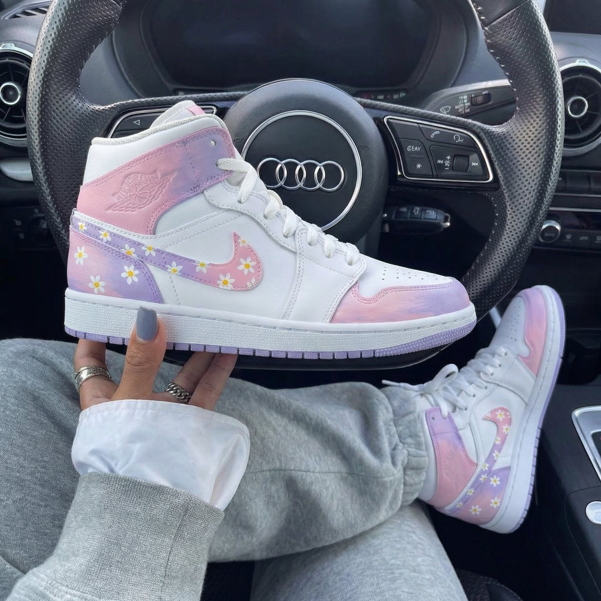 Baby Pink Purple Daisy Custom Air Jordan 1