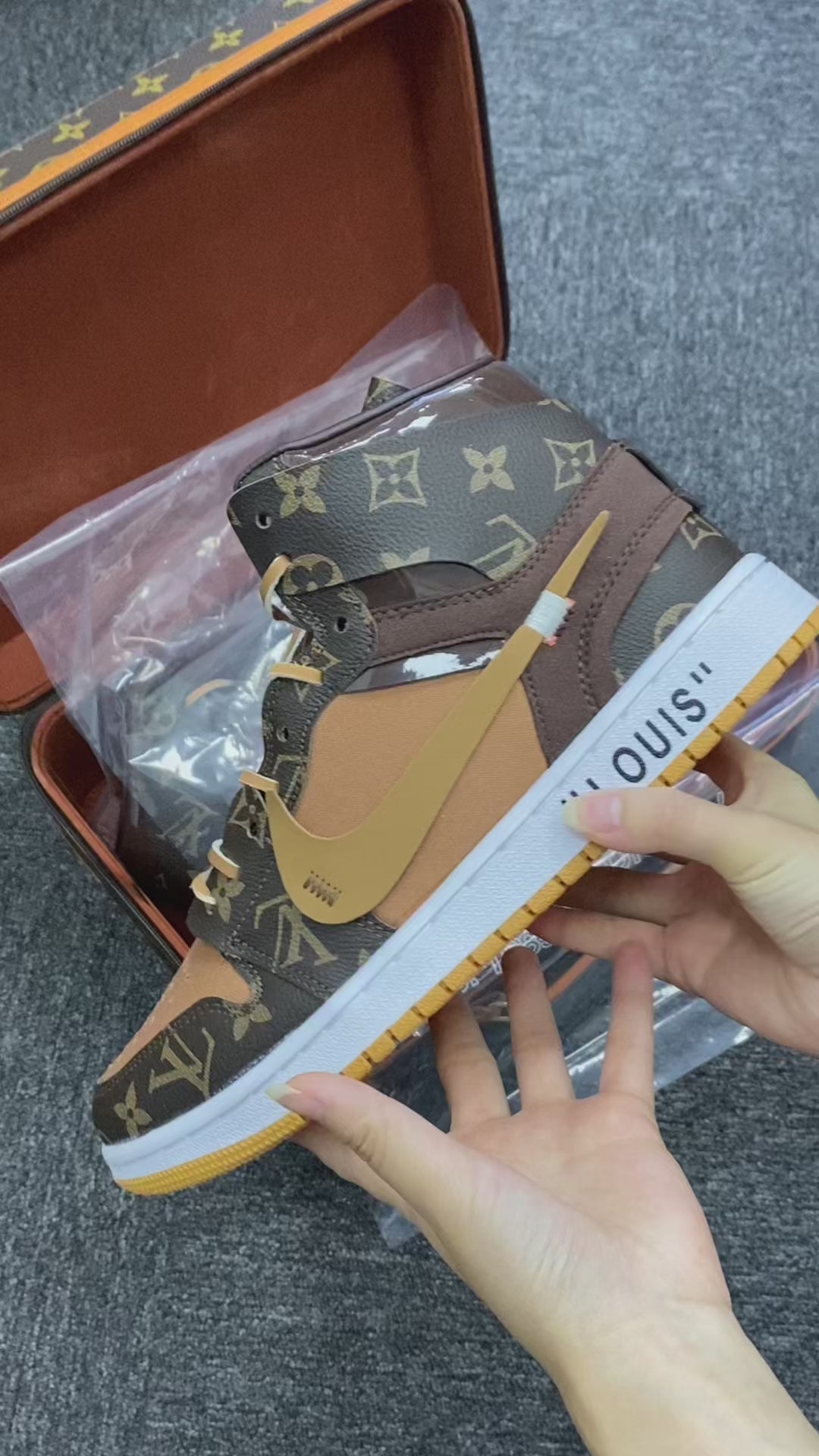 Custom Jordans Brown Khaki LV Logo