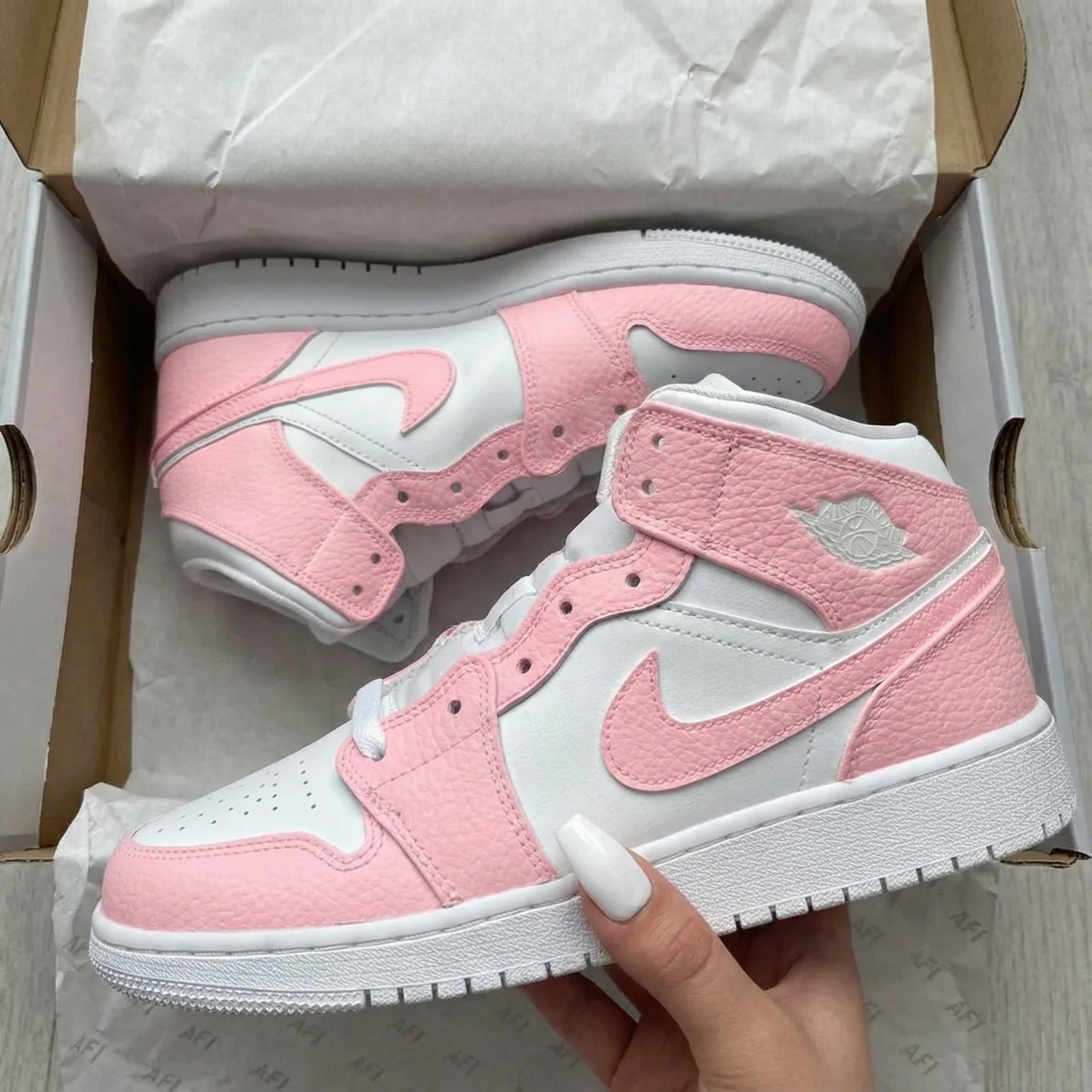 Crafted with attention to detail, the premium materials used in these Custom Sneakers ensure durability. Whether you're hitting the streets or just hanging out, these baby - pink and white Custom AJ1s will make you stand out from the crowd. Get yours today and elevate your footwear collection!